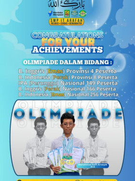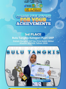 Sampit, 28 Oktober 2025 — Dalam rangka memperingati Hari Sumpah Pemuda ke-97, SMP Islam Terpadu Arafah Sampit menyelenggarakan kegiatan bertema "Menumbuhkan Semangat Persatuan dan Kepedulian di Kalangan Generasi Muda". Kegiatan ini dikemas secara edukatif dan inspiratif melalui dua agenda utama, yakni penandatanganan komitmen…